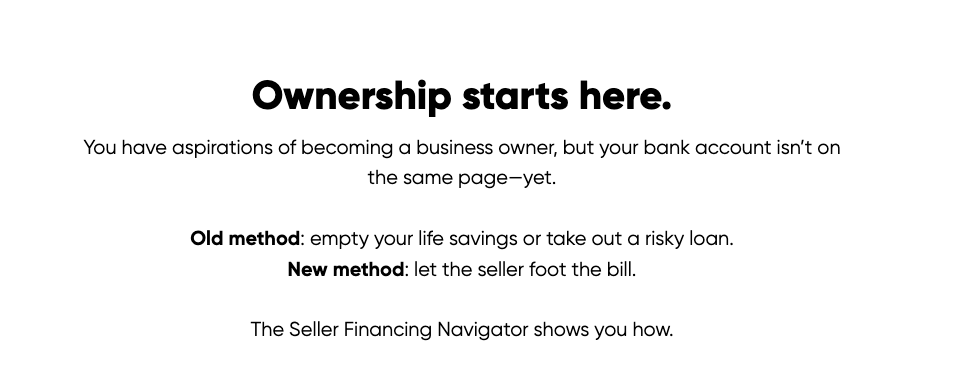 Contrarian Thinking is on a mission to unseat the power monopoly on Wall Street and give it back to the regular Joes on Main Street. This landing page is for one of her flagship courses—The Seller Financing Navigator. In it, Contrarians learn how to use seller financing to land better terms for biz-buying deals.